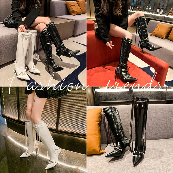 PINKEY P402 Knee High Boots Wanita – Sepatu Boots Hak Tinggi 8cm, Pointed Toe, Kulit Premium