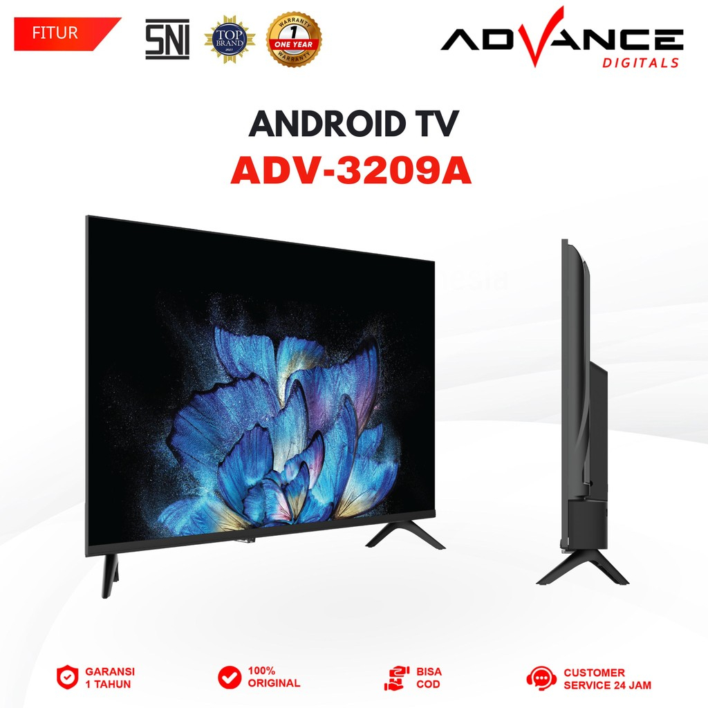 Advance ADV-3209A Android TV Smart TV Full HD 32 Inch WiFi LAN TV Digital DVB-T2 Garansi Resmi 1 Tahun Frameless