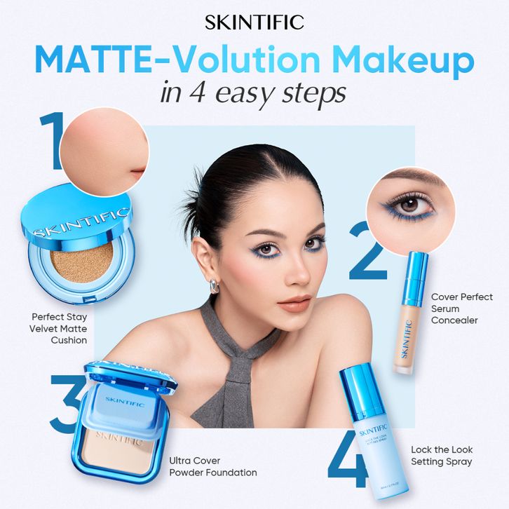 MAKEUP SET SKINTIFIC MATTE COVER PERFECT SERUM CONCEALER VELVET CUSHION ULTRA COVER POWDER FOUNDATION SETTING SPRAY