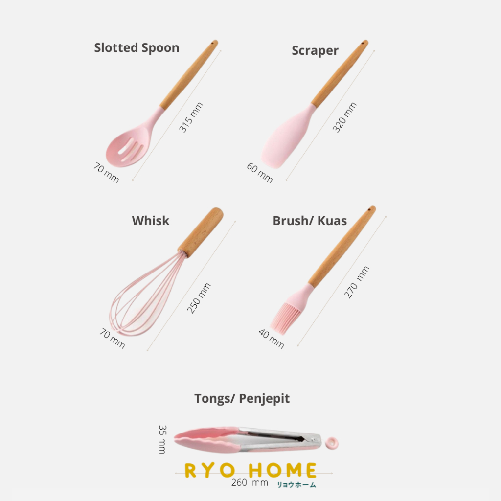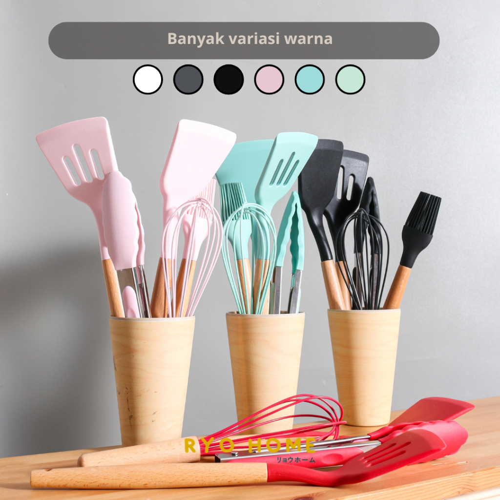 Ryo Home - KAI Peralatan Masak Bahan Silikon Dengan Gagang Kayu