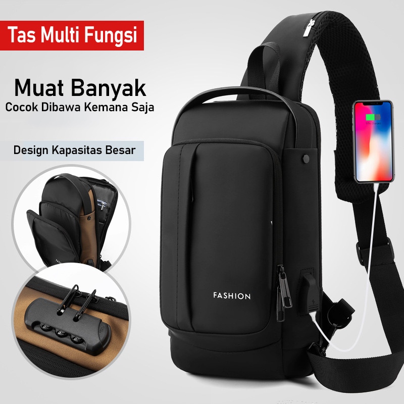 Highland Tas Selempang Pria Dengan Kunci Sling Bag Laki Laki Casual Tas Waitsbag Cowok Shoulder Bag TS732