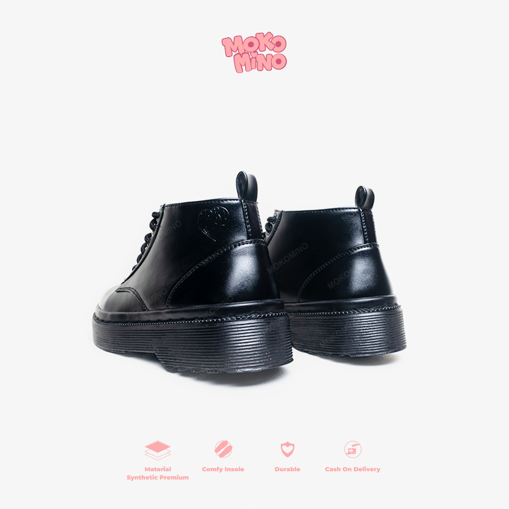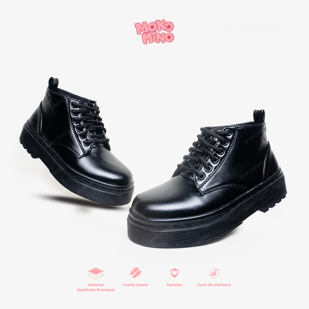 Mokomino - Sepatu High Boots Formal Wanita 6 Hole Warna Hitam