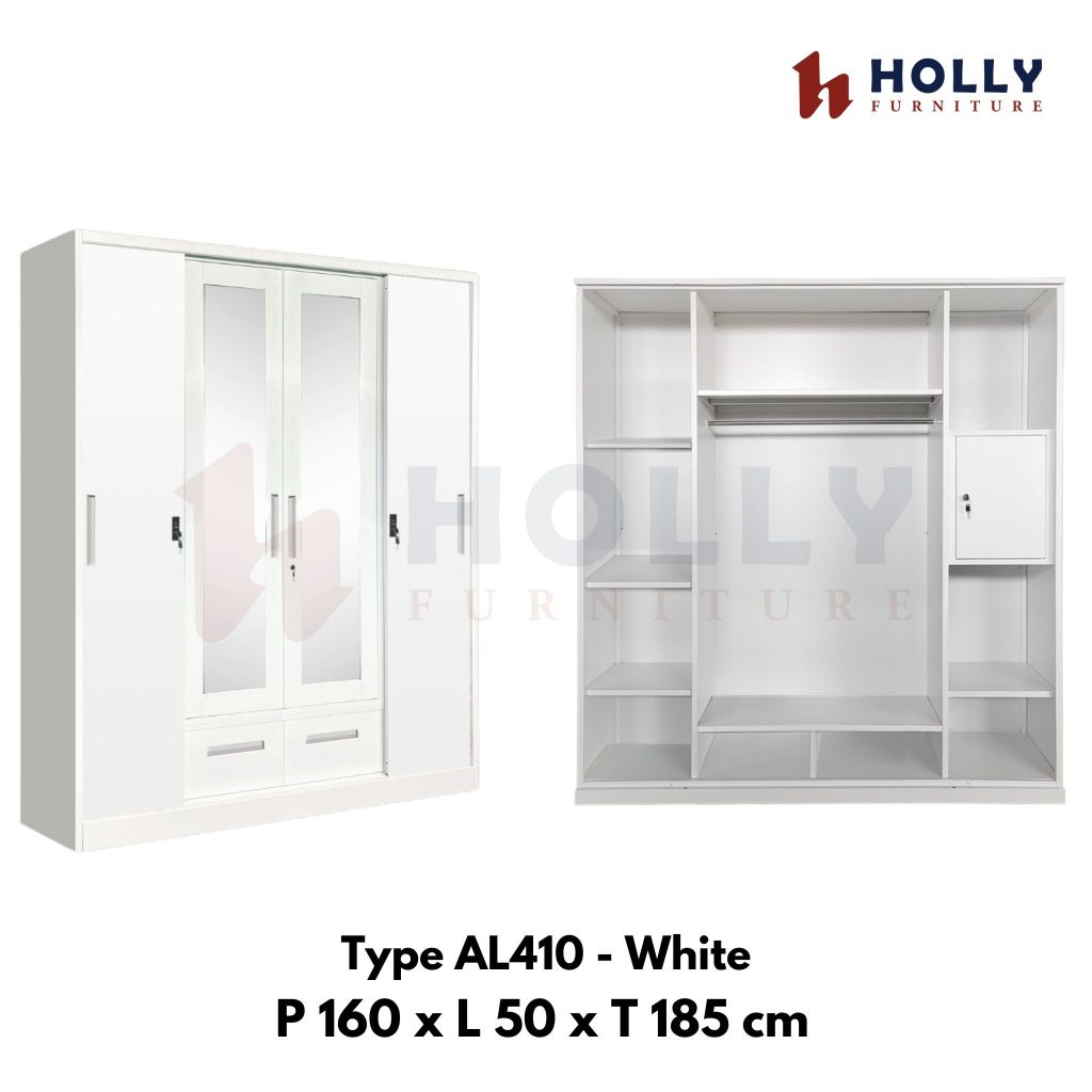 HOLLY Furniture Lemari Pakaian Besi Sliding Swing 4 Pintu Murah Modern Minimalis