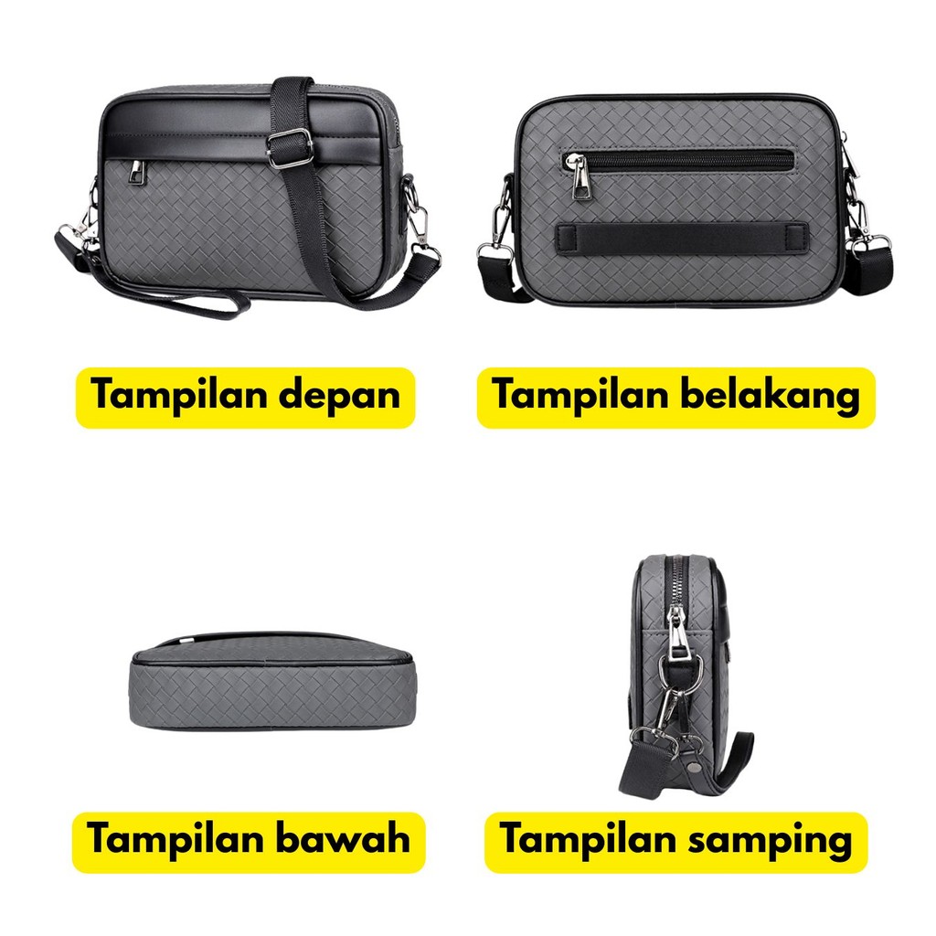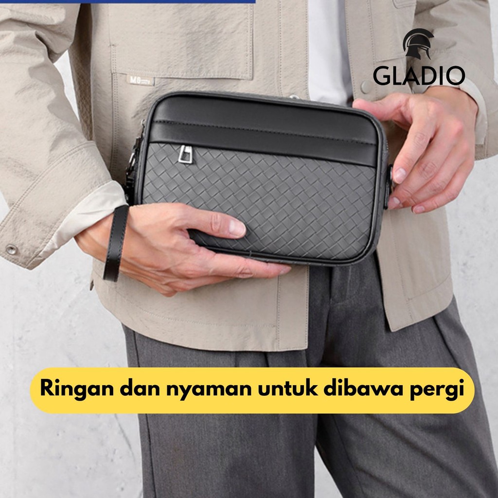 GLADIO Tas Selempang Pria Casual Simple Terbaru Anyaman Premium Kulit Abu Abu Motif Sling Bag Cowok