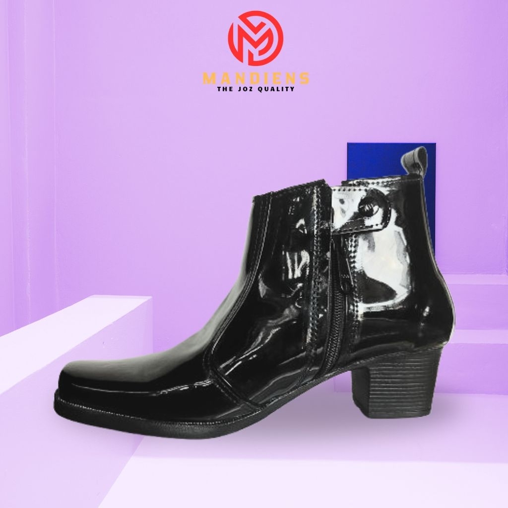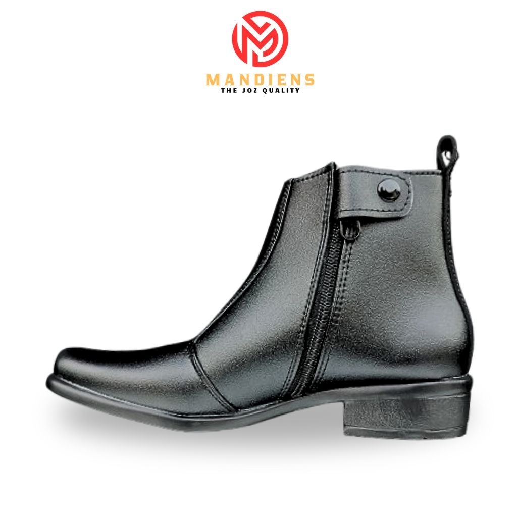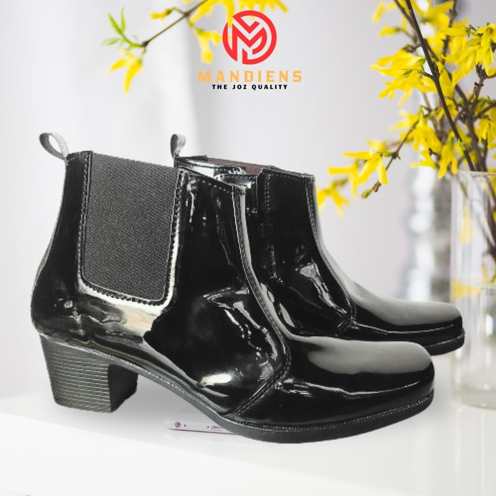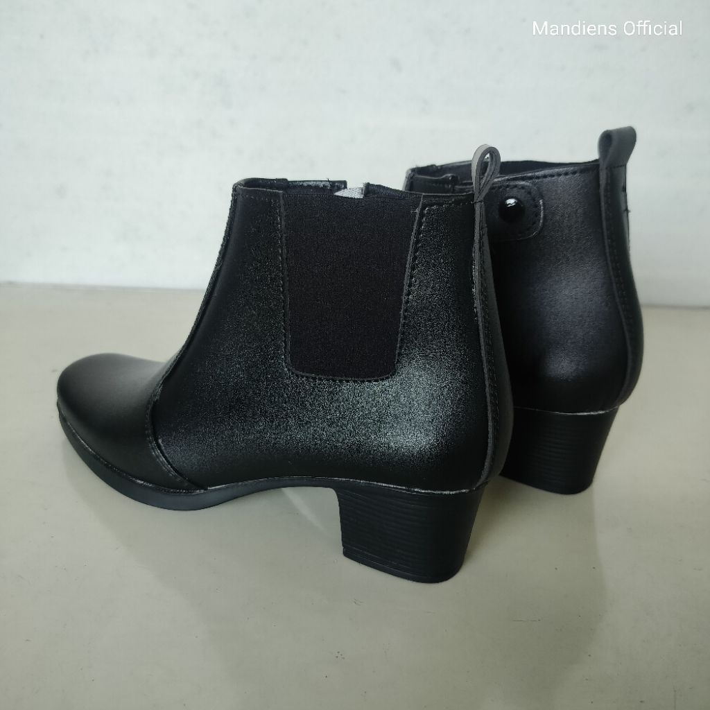 Mandiens EL14 - Sepatu Chelsea Boots Wanita pdh polwan secwan Satpam Heels Hitam Antislip