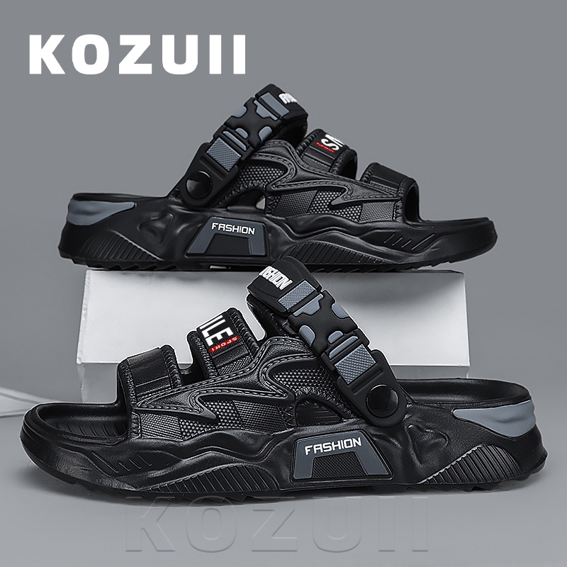 Kozuii Sandal Pria Sandal Gunung Pria Outdoor Adventure Hitam Sandal Pria Sol Tebal Anti Slip Bahan EVA Size 39-44
