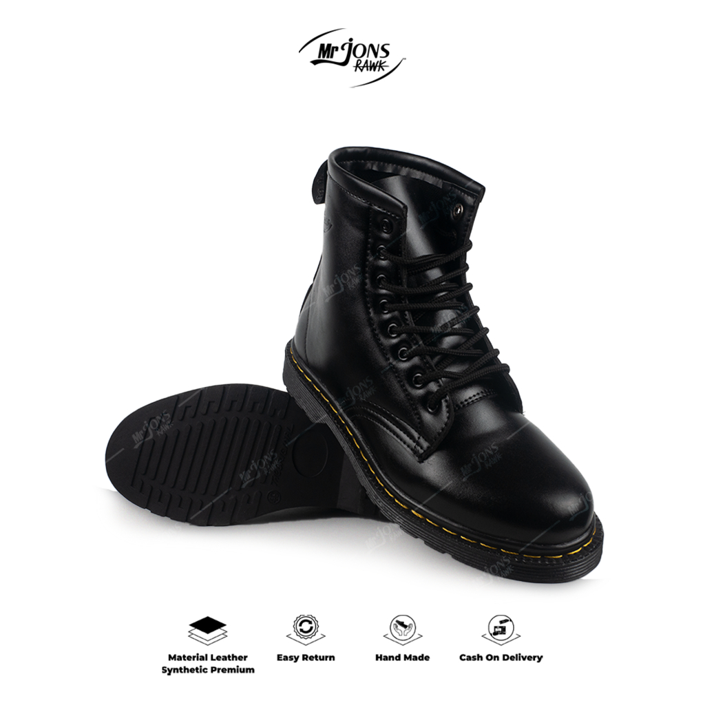 Mr.Jonsrawk Official - Sepatu Formal Boots 8 Hole Pria Wanita Hitam