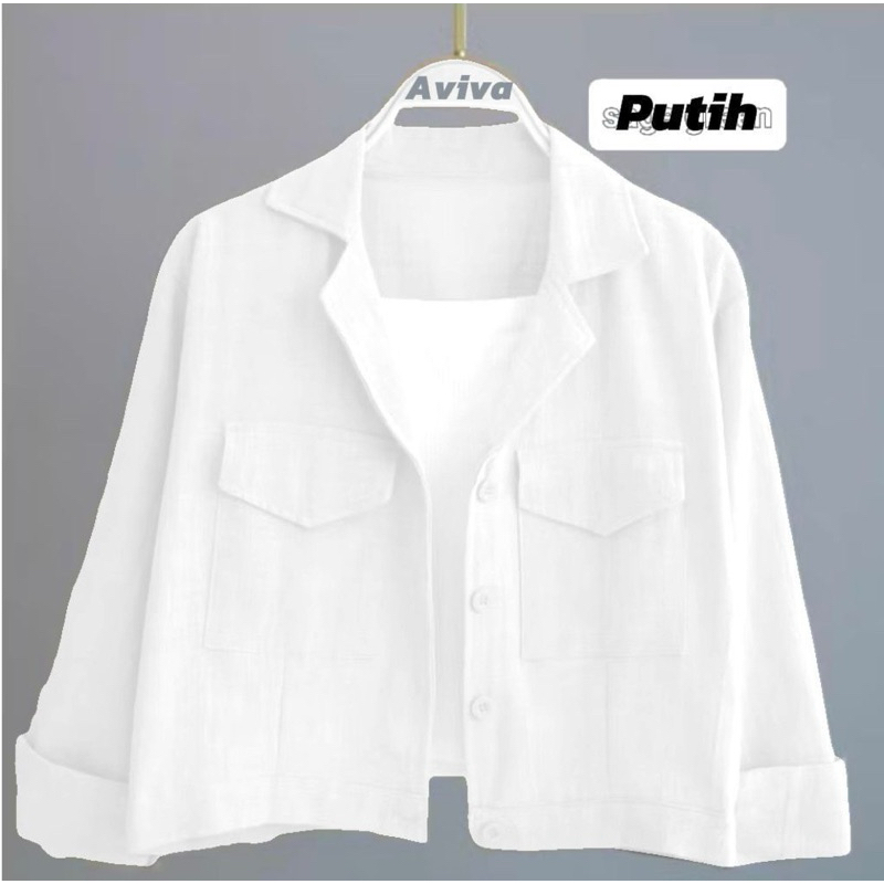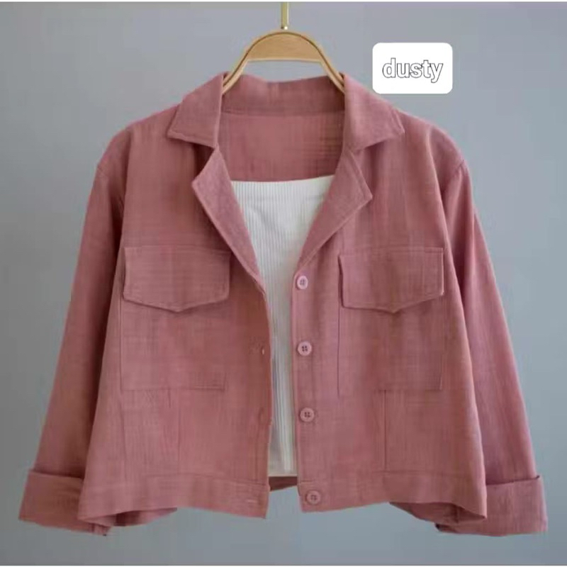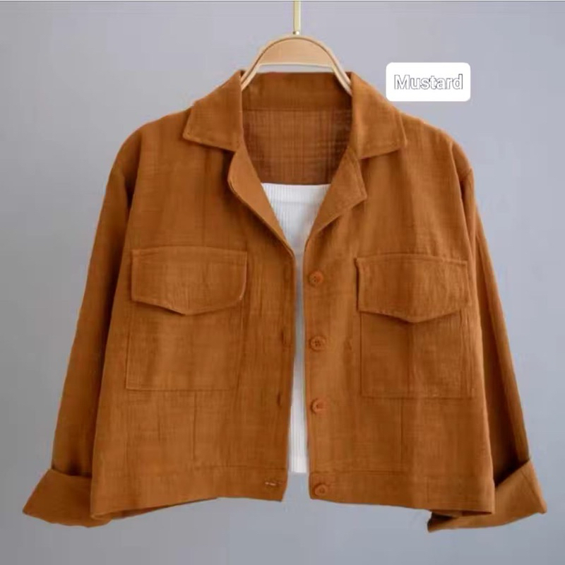 Kemeja Outher Wanita Linen Kantong Depan Basic Shirt / Kemeja Crop Top Wanita Lengan Panjang Korean Style