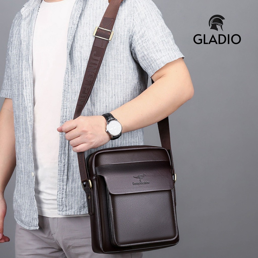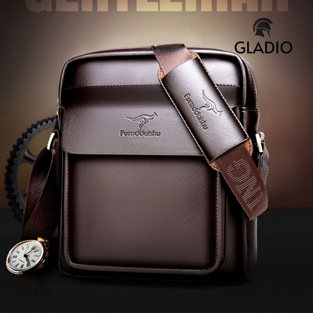 GLADIO Tas Selempang Kekinian Pria Sugita Kulit Cokelat Mewah Terbaru Sling Bag Cowok GLD017B7