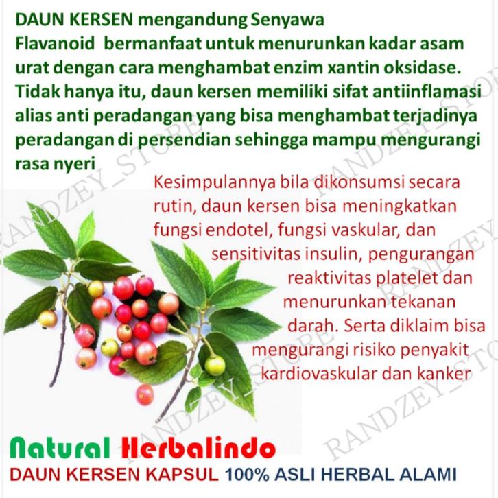obat asam urat rematik Daun kersen kapsul herbal pengapuran nyeri sendi otot kaku saraf kecepit isi 50