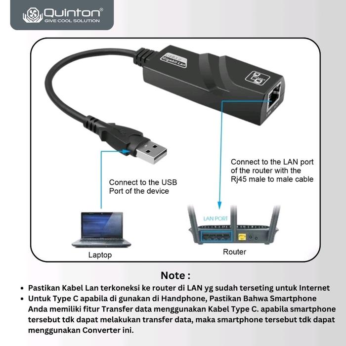 converter adapter usb to Lan / RJ45 10/100/1000mbps Ethernet Internet network. Kabel - 100MBPS Type A