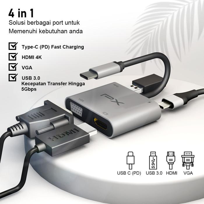 USB Type C 3.1 Hub Converter Adapter Laptop Macbook to HDMI VGA USB 4 in 1 PX UCH14 - Space Grey