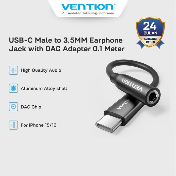 Vention Kabel Audio Converter USB C Male to 3.5 Female Adapter DAC For Iphone 15 16 - BIH