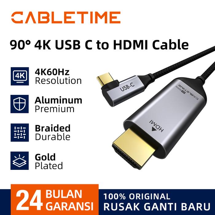 CABLETIME Kabel USB Type C to HDMI Thunderbolt 3 Converter HDMI - CC11 90 Degree 1.8M