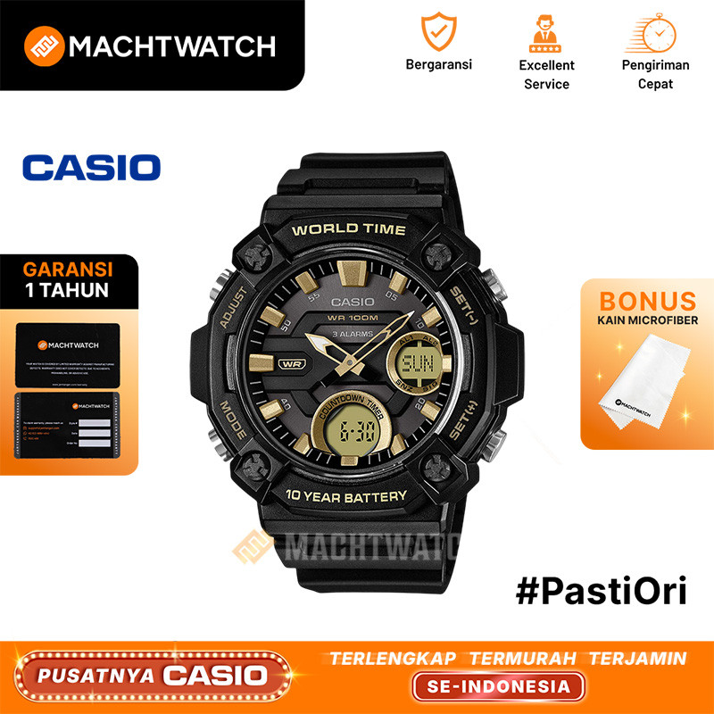 Jam Tangan Pria Analog Digital Casio Standard AEQ-120W-9AVDF AEQ120 AEQ-120W Black Resin Strap