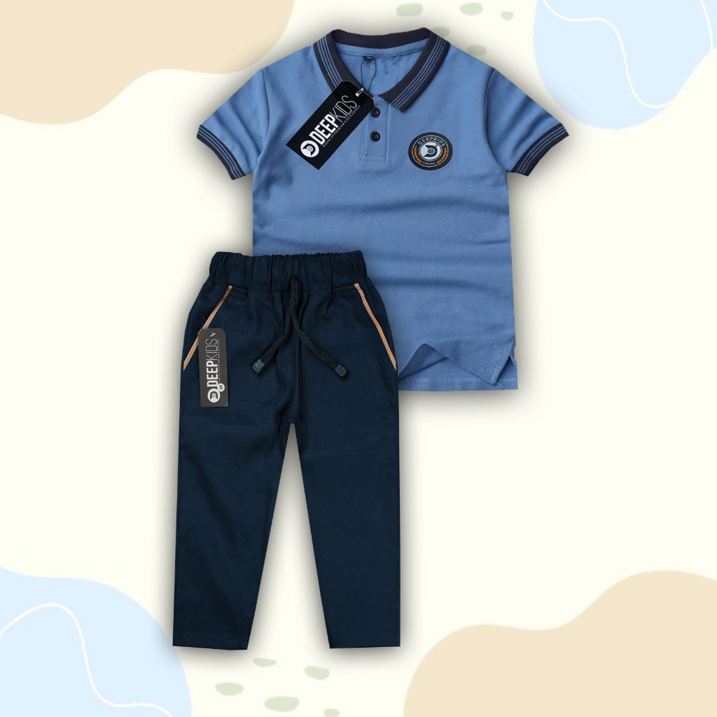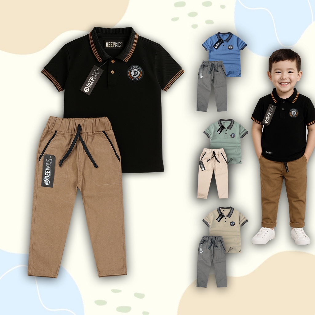 Setelan Anak Laki Laki Kaos Kerah Polo & Celana Chinos Panjang Usia 1-12 Tahun Set KKL Chinos Panjang