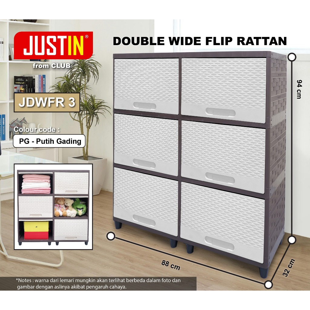CLUB Justin WIDE - Lemari Pakaian Plastik - Lemari Plastik Susun - Rak Susun Serbaguna