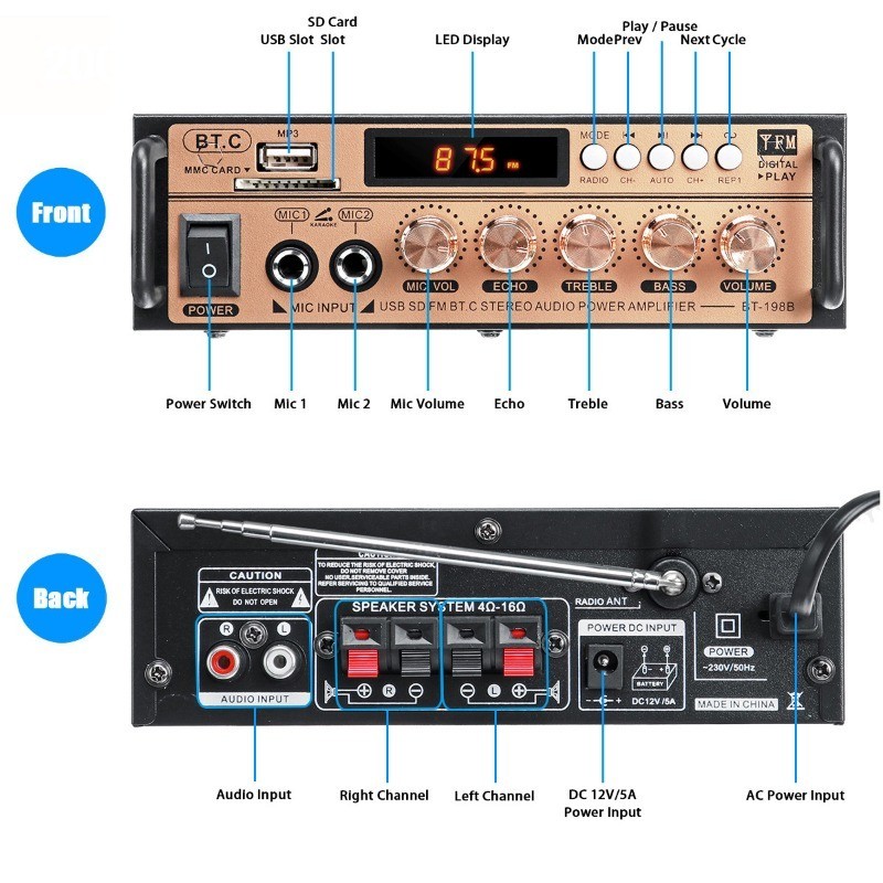 Kerndy BT-198E ECHO Amplifier Karaoke Bluetoth Power Amplifier Echo BT198e