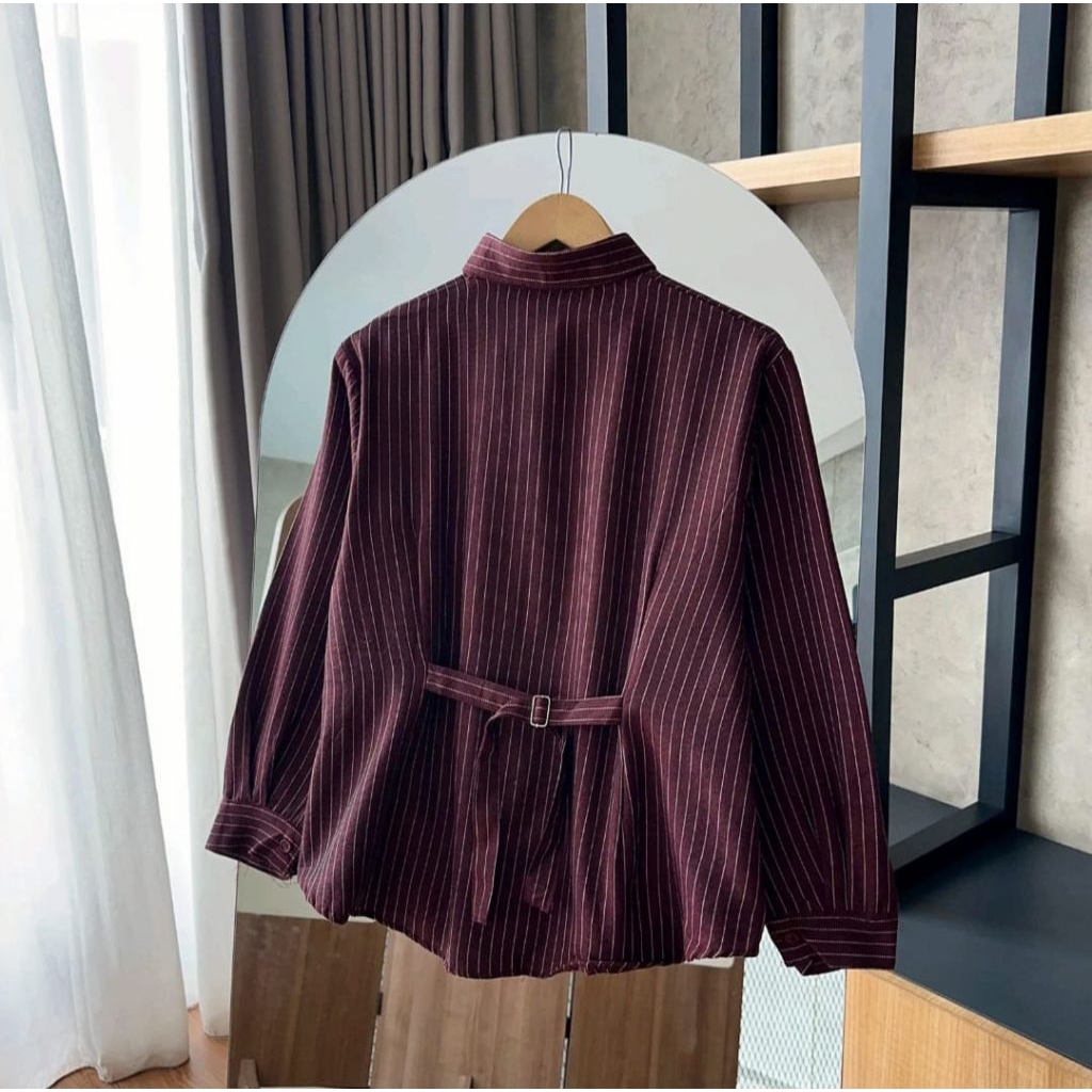 Kemeja Wispei Atasan Wanita Motif Salur Fitted- Luna Stripe Kemeja Wispei Slim Fit Body - Baby Shirt Working Terlaris