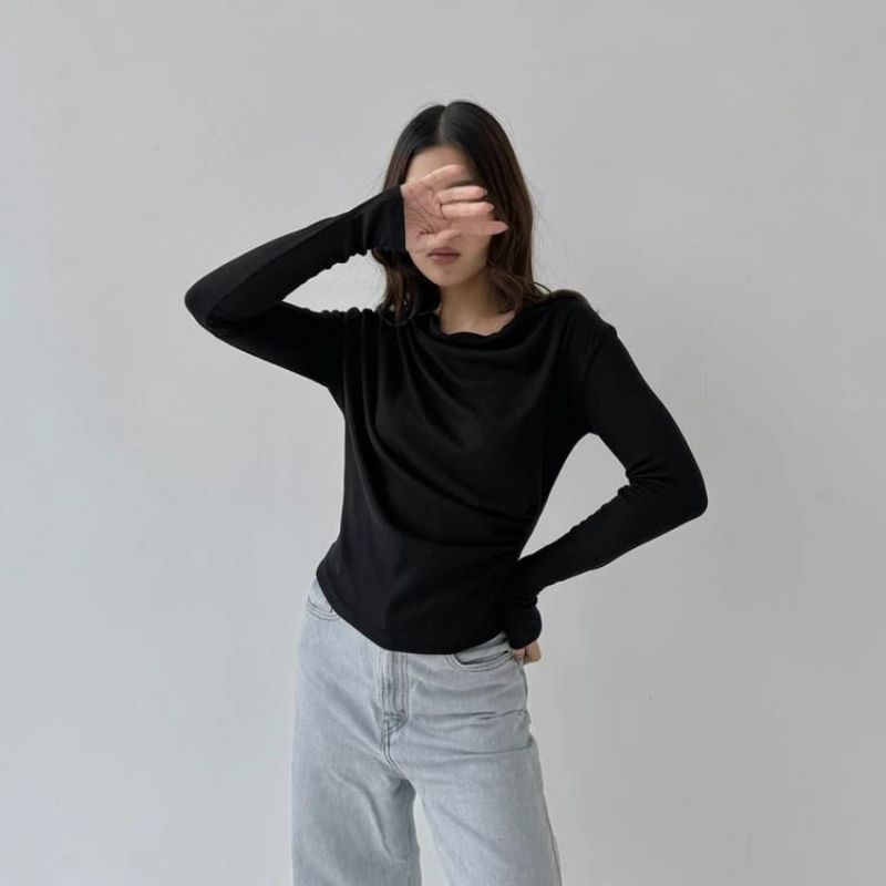 APRIL T0P | Atasan Knit Wanita Korean Top Baju Knit Wanita Lengan Panjang Basic Long Sleeve