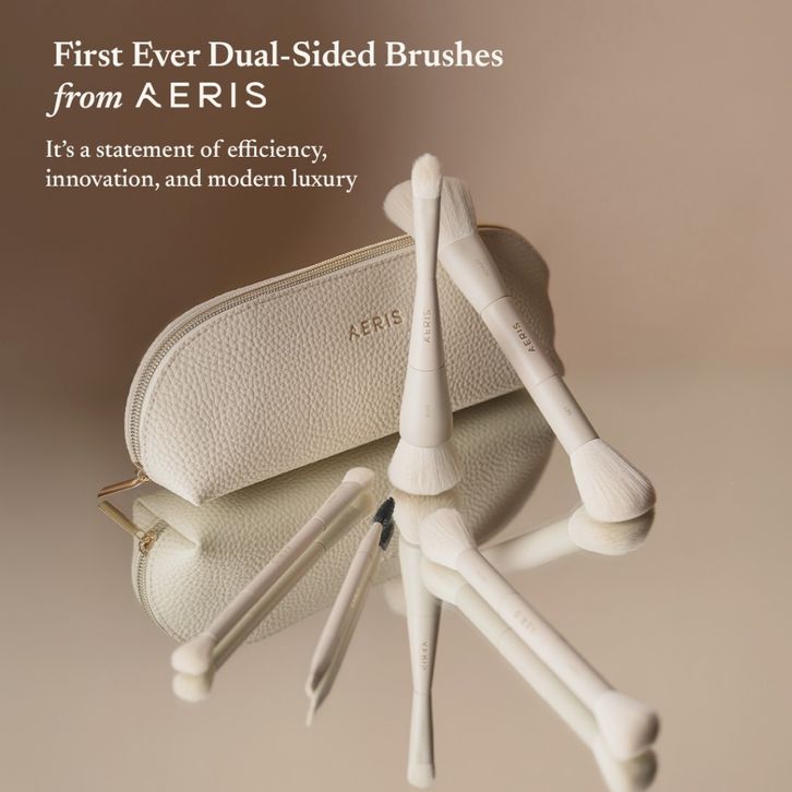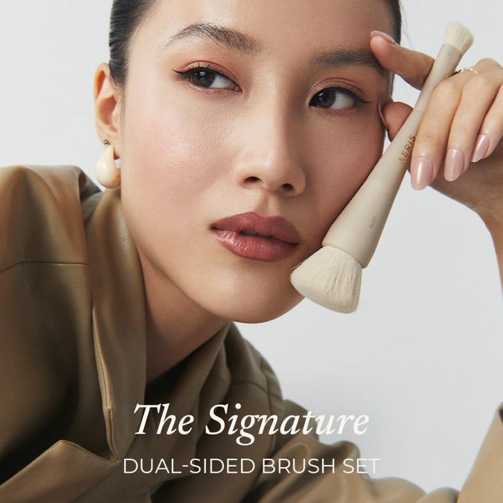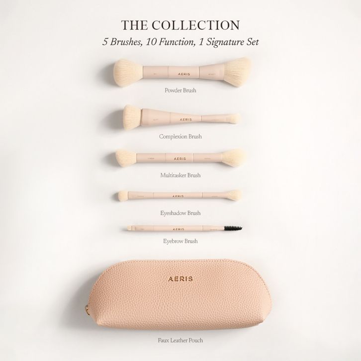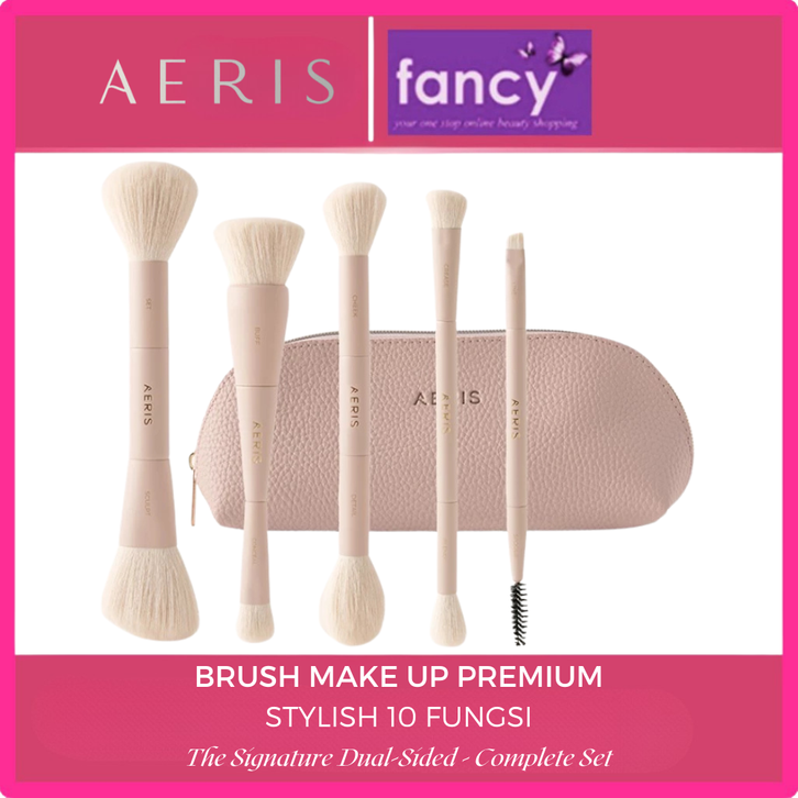 BRUSH SET AERIS BEAUTÉ THE SIGNATURE DUAL SIDED MAKE UP LEMBUT PREMIUM MULTIFUNGSI TRAVEL PORTABLE BEDAK FOUNDATION