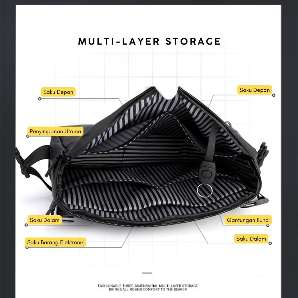 GLADIO Tas Selempang Pria Mamoru Hitam Anti Air Keren Simple Sling Bag Terbaru Muat Banyak GLD025B5