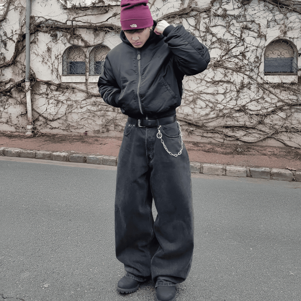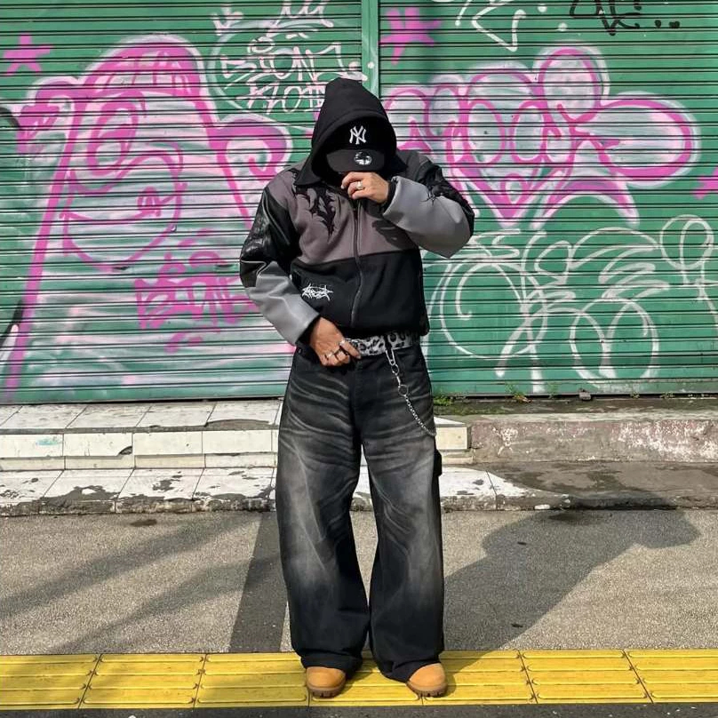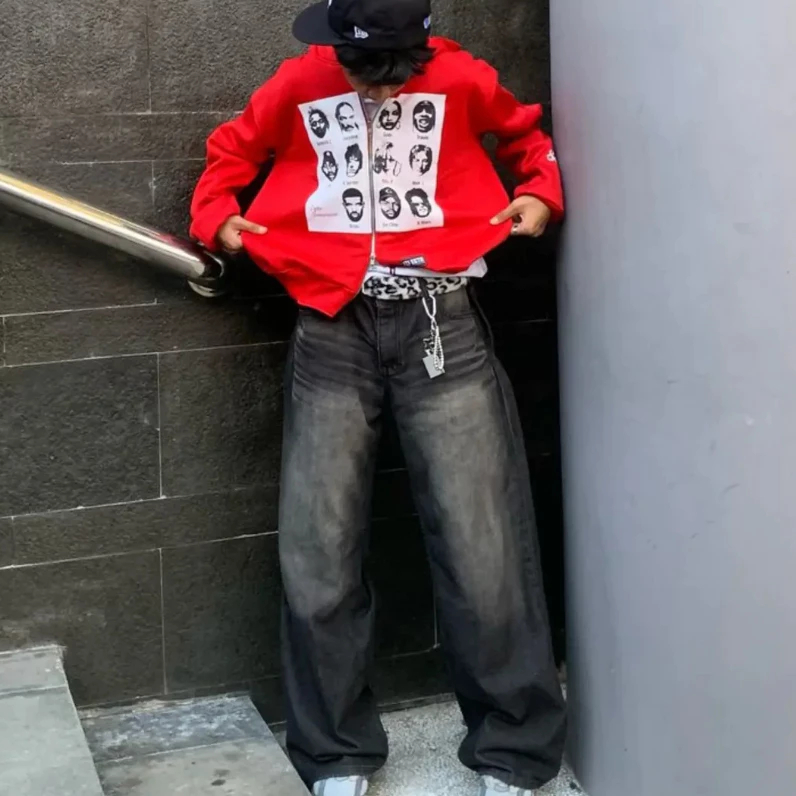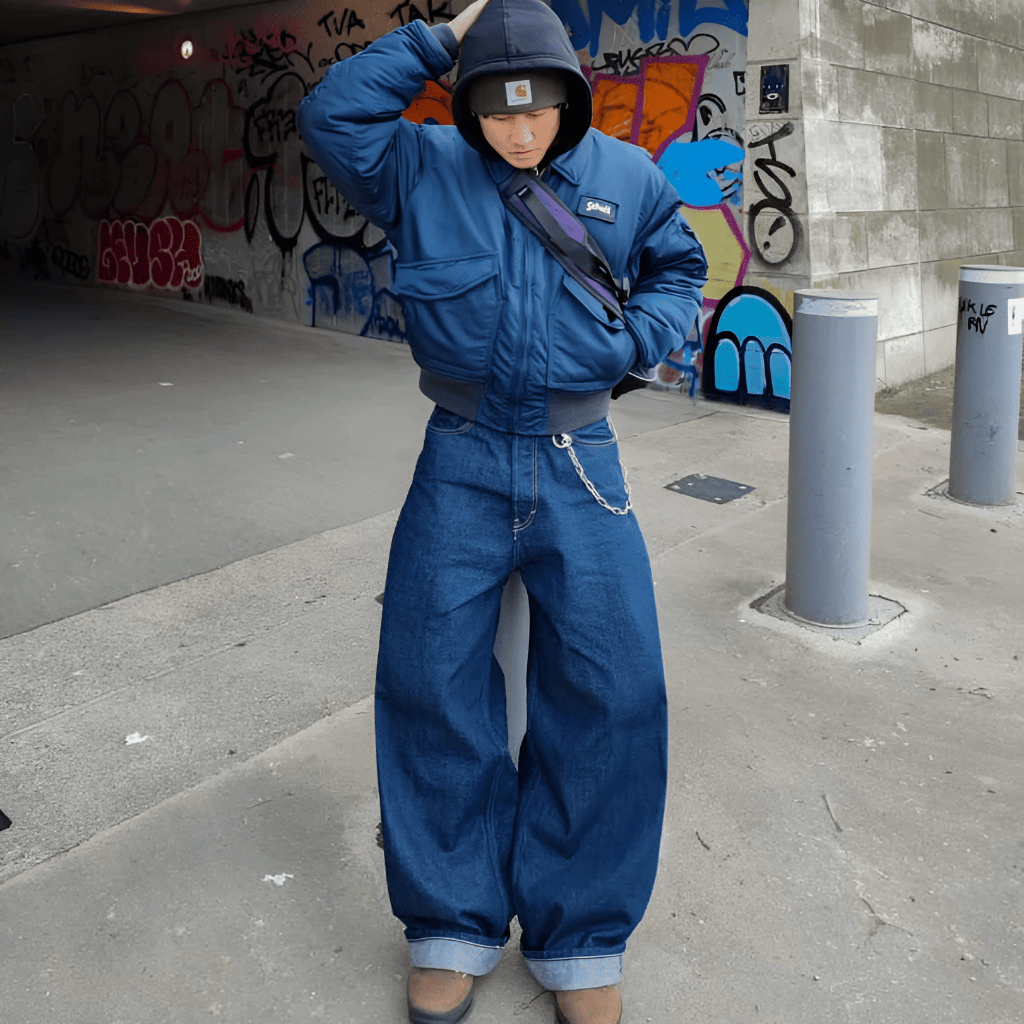 Celana Jeans Loose Baggy Wide Leg Oversize Pria Celana Gombrong Wisker Whisker Skena Y2K Denim Terbaru