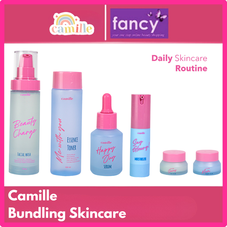 BUNDLING SKINCARE CAMILLE BEAUTY BASIC SKINCARE FACIAL WASH ESSENSE TONER SERUM MOISTURIZER DAY NIGHT CREAM FACE MIST