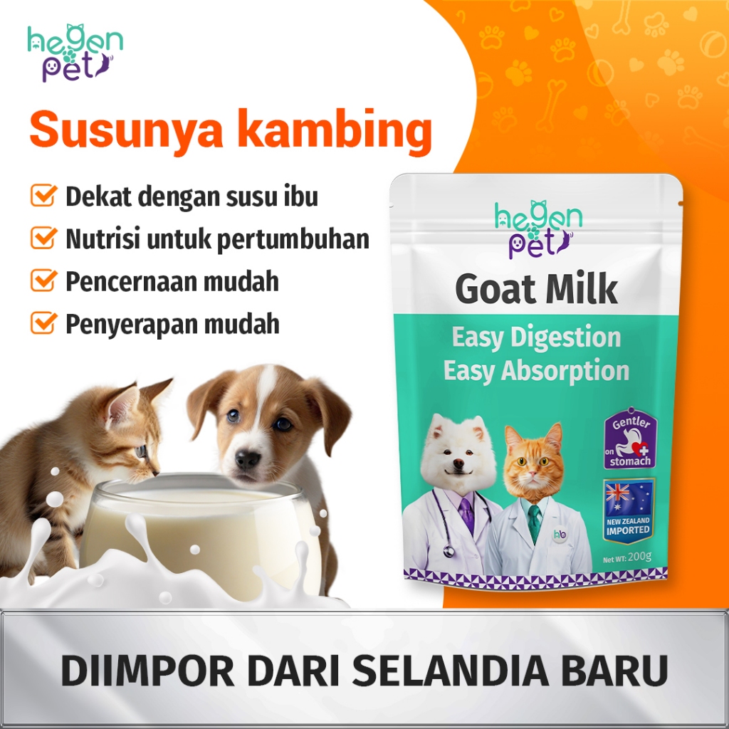 Hegen Pet Susu Kambing Bubuk – Nutrisi & Stimulus Nafsu Makan Anjing/Kucing Anak Anjing, Anak Kucing