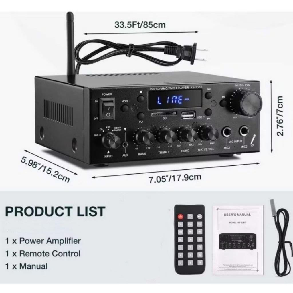 (Model Terbaru 2023)Bluetooth EQ Audio Amplifier Home Theater FM 1000W KERNDY KS-33BT NEW 2023