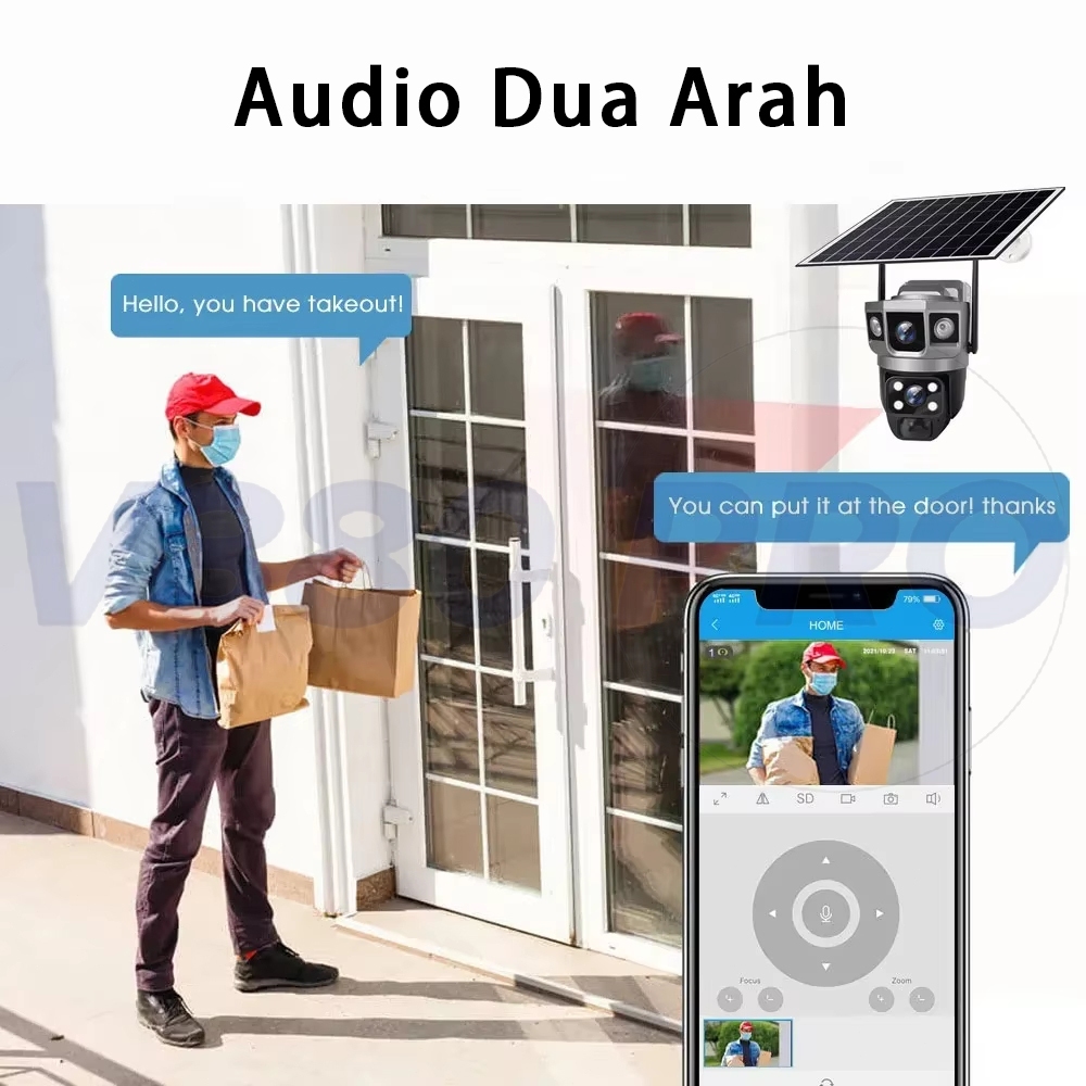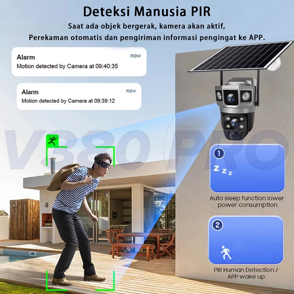 V380 Pro Kamera CCTV Tenaga Surya 4G SIM WIFI Daya Tahan Baterai Hingga 14 Hari Dalam Cuaca Berawan