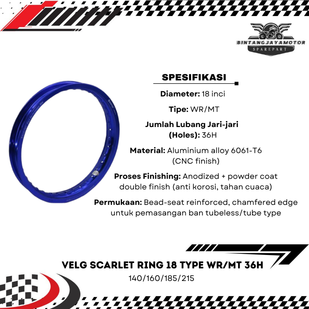 Velg Pelek Rim Alloy Scarlet Racing Ring 18 type WR Shape ( Satuan ) UK 140 160 185 215