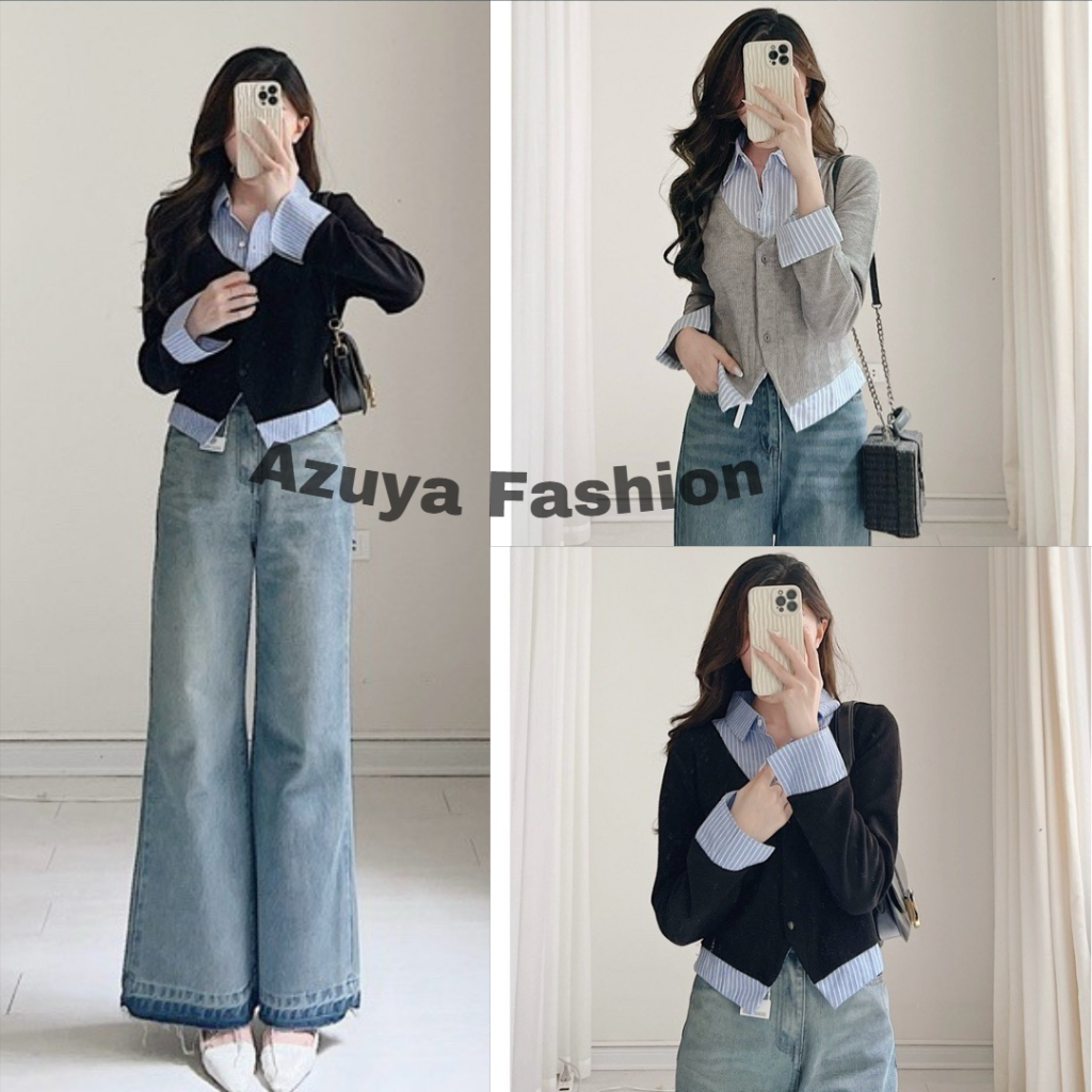 AZUYA - KEMEJA BLUS YUKI KOMBINASI 2 WARNA |KEMEJA CROP WANITA CARDYGAN CROP WANITA \ CROP T0P WANITA
