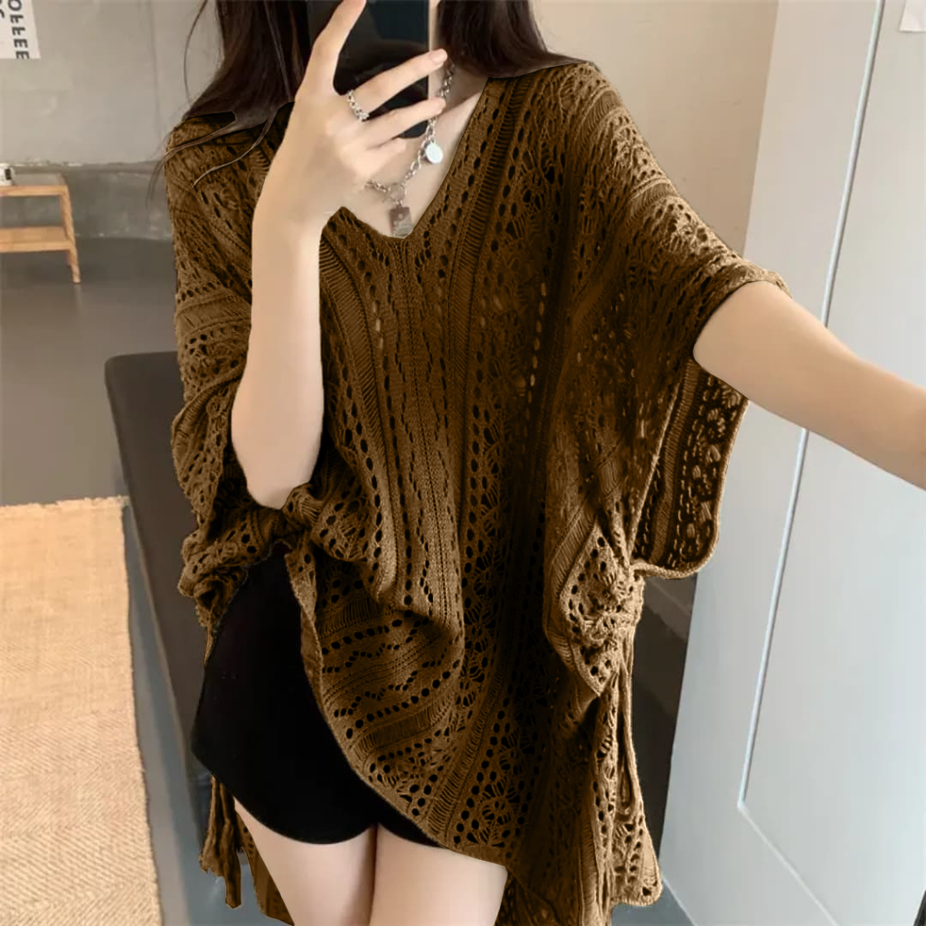 Emiola Hollow Blouse Out Loose Knit Top - Atasan Wanita Premium