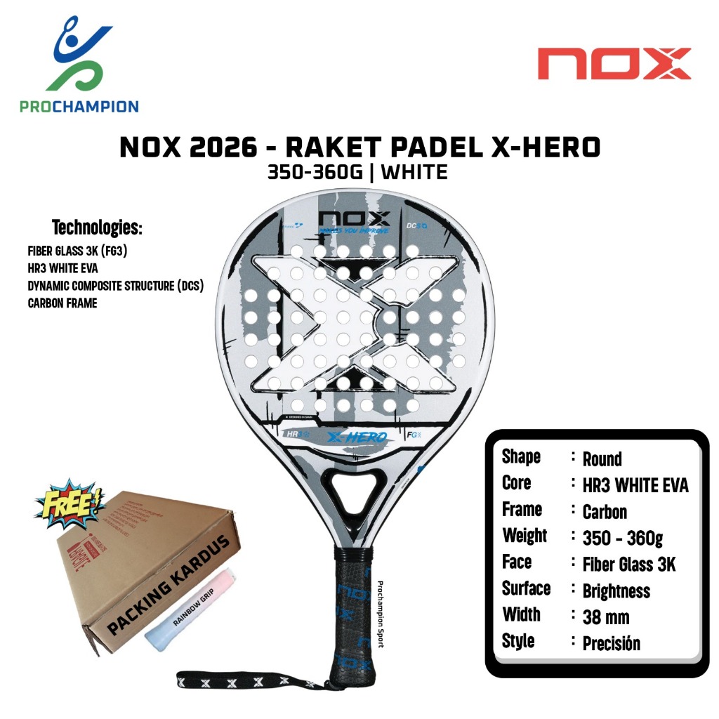 Raket Padel NOX X-Hero 2026 350-360G White