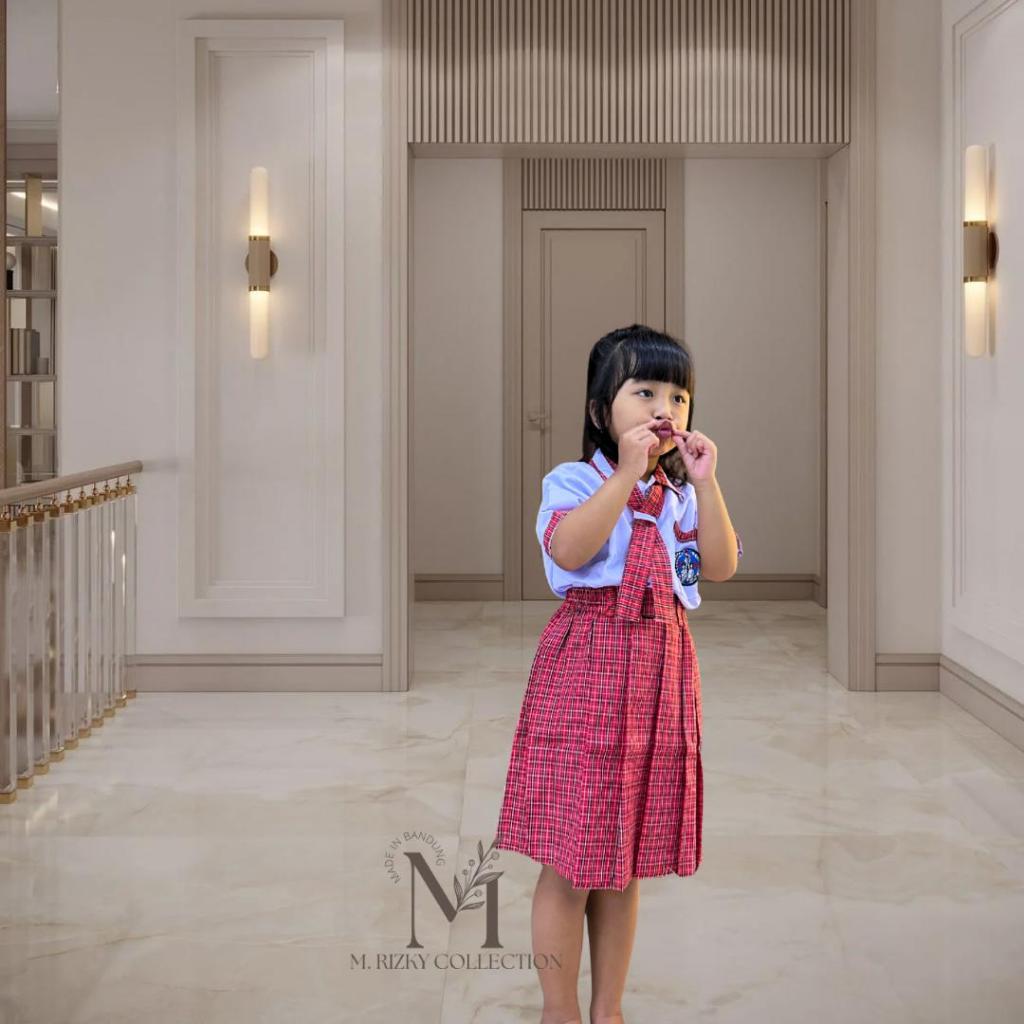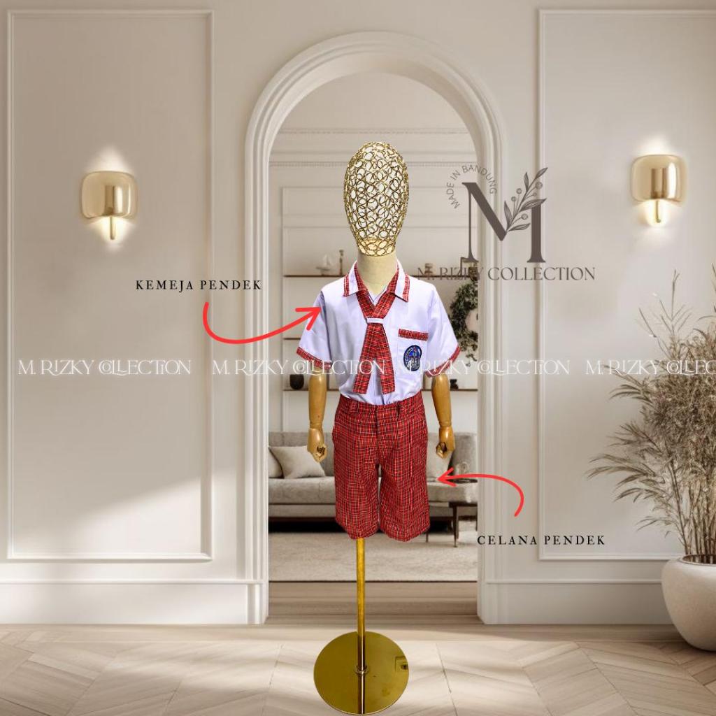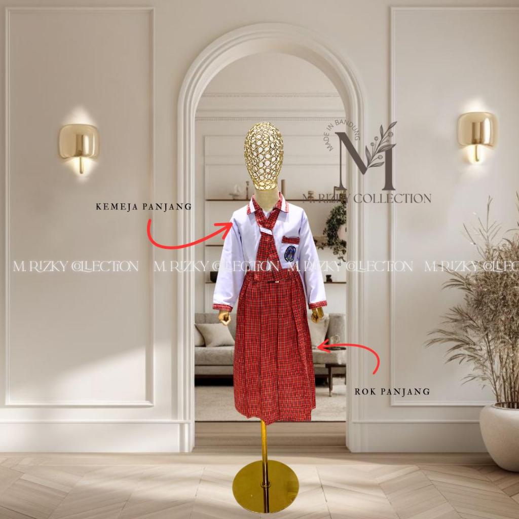 Set Seragam Kotak-Kotak Merah TK/PAUD Nasional Laki-Laki dan Perempuan Panjang/Pendek
