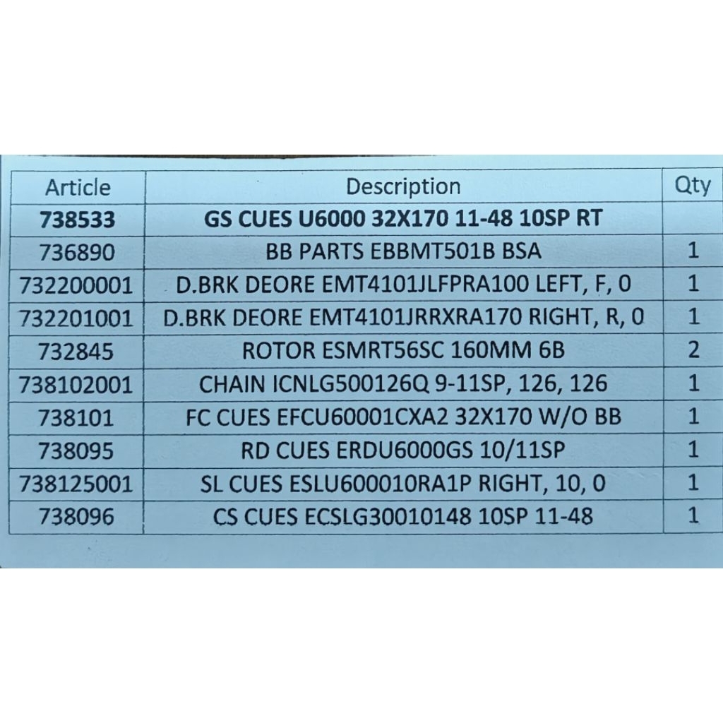 SHIMANO CUES GS-U6000 1x10-Speed 2-Piston Disc Brake Groupset Sepeda MTB