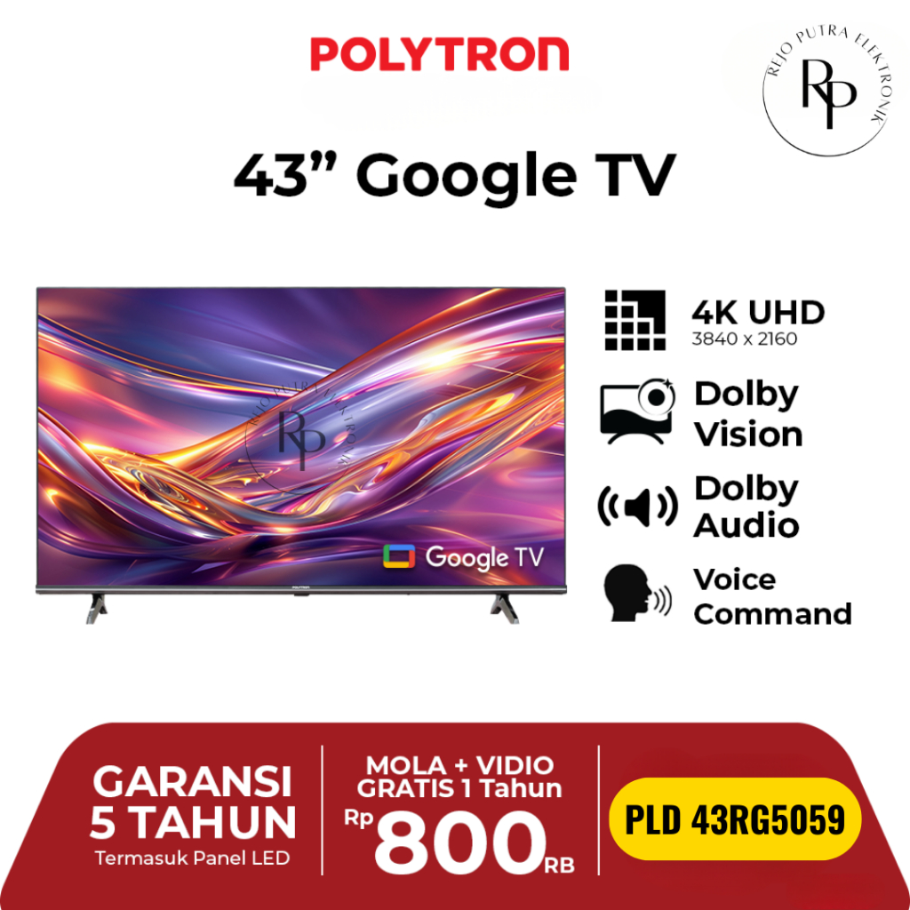 TV LED POLYTRON 43 INCH SMART CINEMAX GOOGLE TV PLD 43RG9059 / 43RG5059 FULL HD HDMI USB WIFI