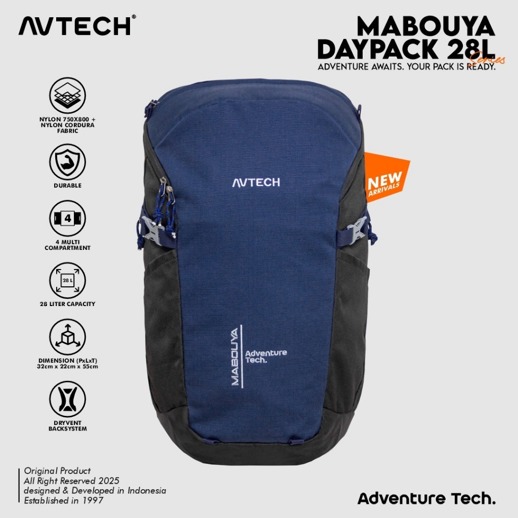 AVTECH - Tas Daypack Ransel Kerja Sekolah Trekking Travel Bag Laptop 16 Inch 28 Liter - MABOUYA 28