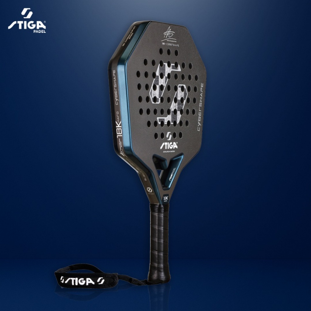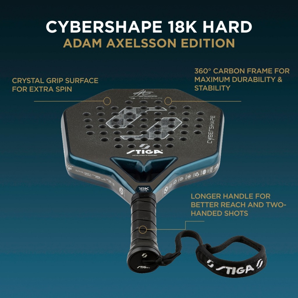 Raket Padel Tenis Tennis Stiga Professional Padel Cybershape 18K Hard Adam Axelsson Edition Carbon Duplex Original