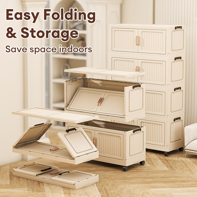 Lemari Lipat Plastik Besar 50CM Dengan RODA Kabinet Penyimpanan Multifungsi