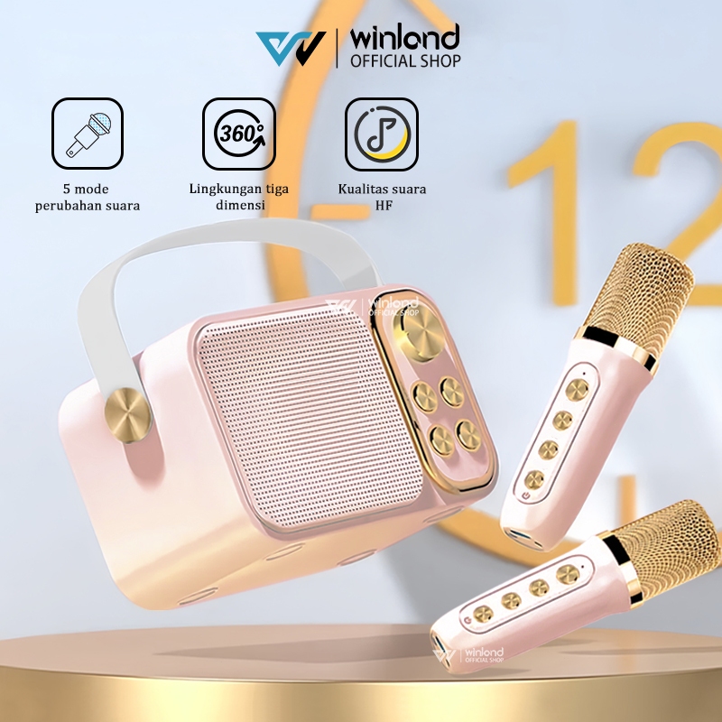 Winland Speaker Bluetooth Karaoke 1 set 2 Wireless Microphone Cute Wireless Lucu Portabel Luar Ruangan Speaker