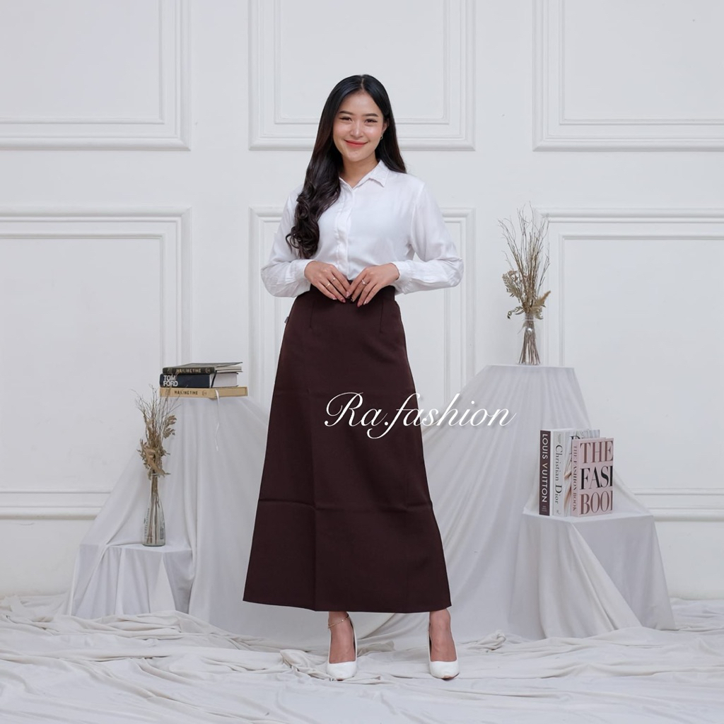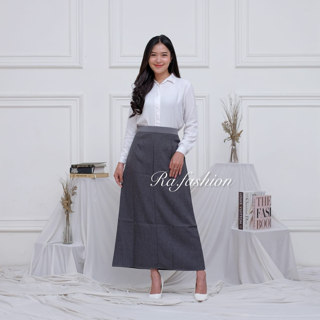 Rok Kerja Formal Pinggang Karet Model A Line Maxi Rok Panjang Wanita Bahan Woll Premium Quality RA