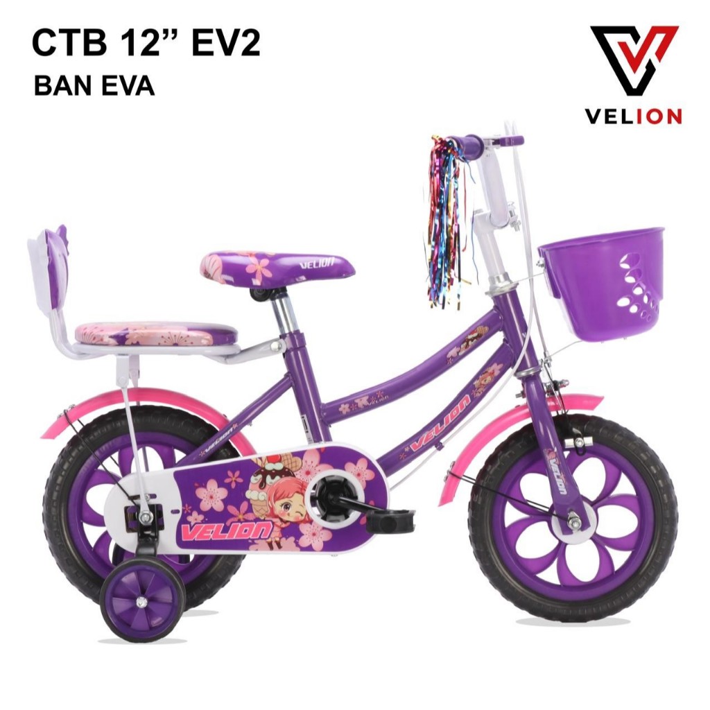 SEPEDA ANAK MINI 12" VELION EVA BAN BUSA anti kempes FITUR TONGKAT SETIR dan POLOS anak perempuan 2-4 tahun