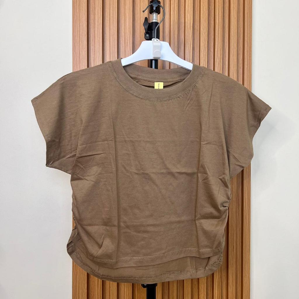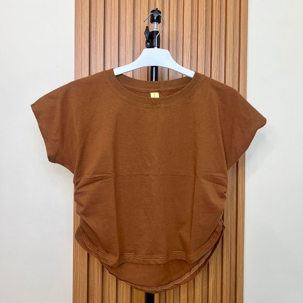 Baju Crop Top Polos Kerah Bulat Samping Kerut Bahan Cotton Combed Atasan Wanita Terbaru