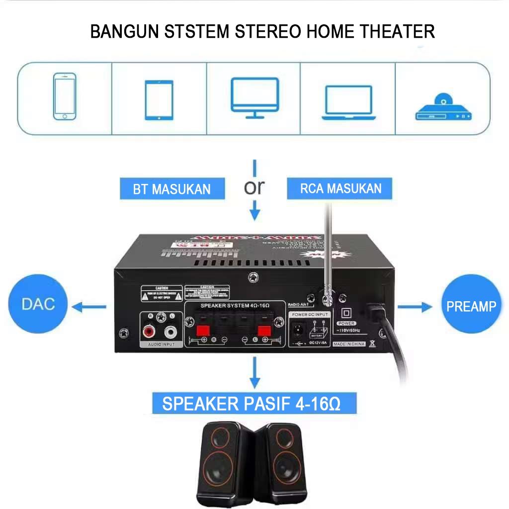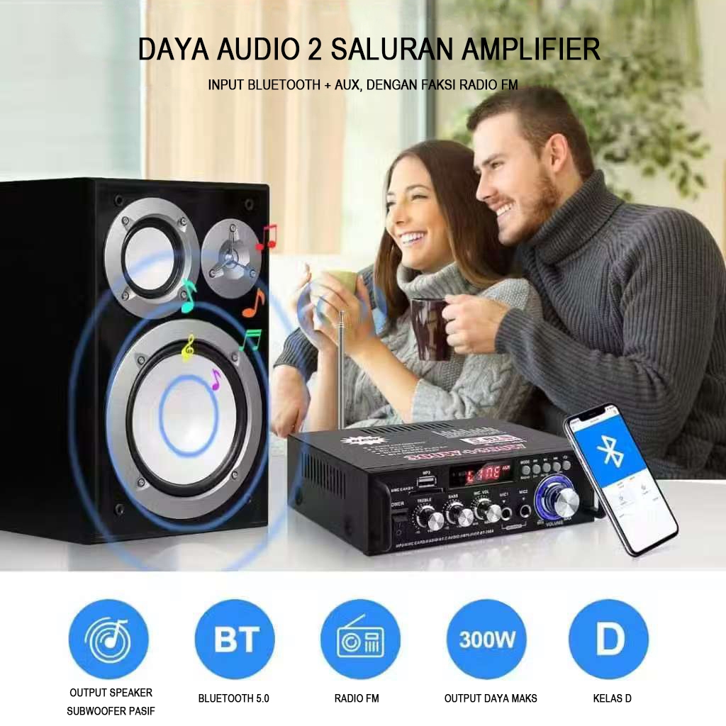 Rising Audio Power Amplifier Wireless BT 5.0 Kerndy BT-198E ECHO 300W+300W Amplifier ECHO Karaoke Bluetooth