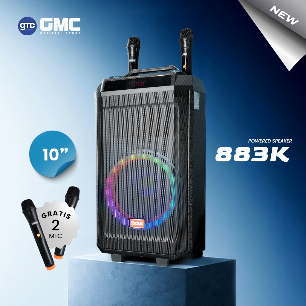 GMC Speaker 883K – Bluetooth Karaoke Speaker 10" – 200W, USB, SD, AV In, FM Radio, Gratis 2 Mic, Karaoke Jack, Wireless