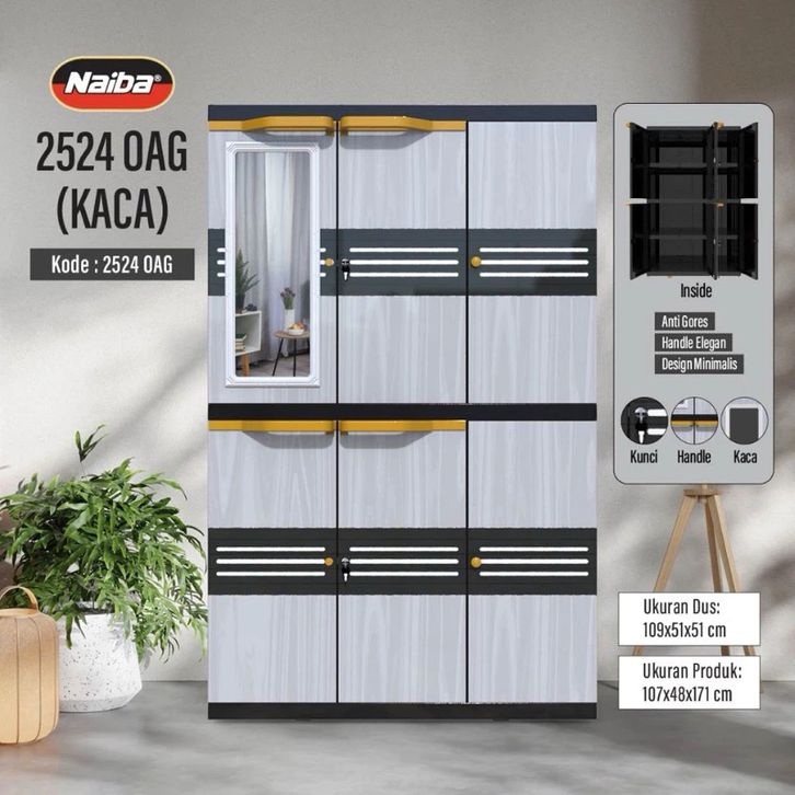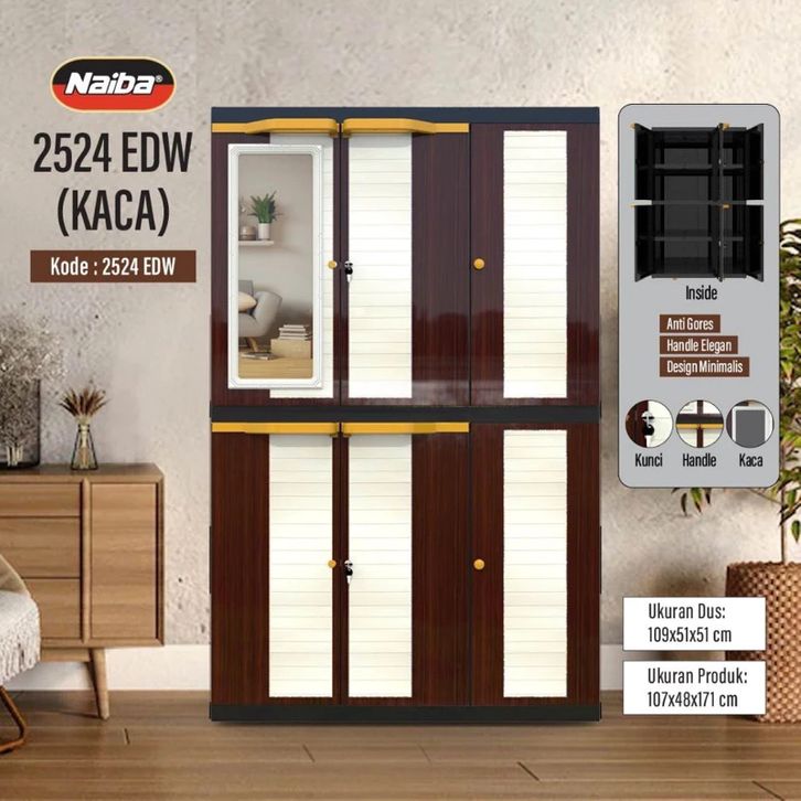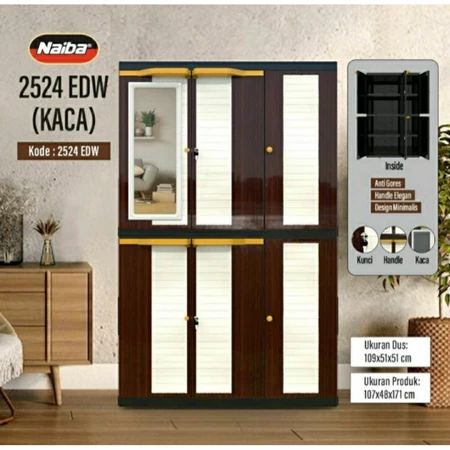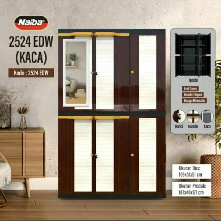 LEMARI PLASTIK NAIBA BERKUALITAS 2024/2025 LEMARI BAJU PAKAIAN KARAKTER NAPOLLY 4 SUSUN 3 PINTU JUMBO MURAH KAIN SLIDING