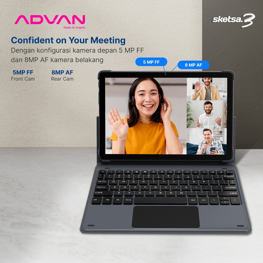 Advan Tab Sketsa 3 Layar 10.1” HD IPS 128GB+RAM 6GB Tiger T606 Android 13 Dual Sim Card Free Keyboard & Stylus Pen