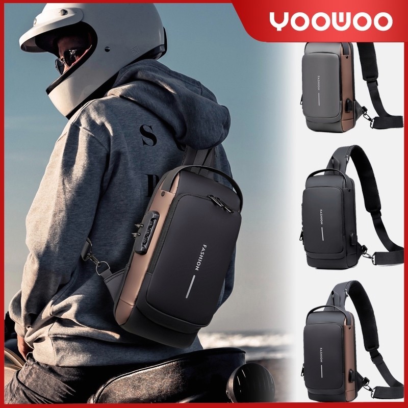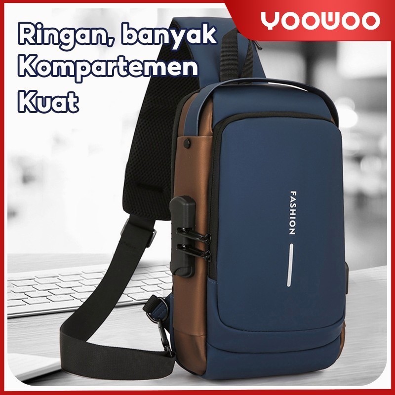 Shoulder Bag Tas Pinggang Tas Selempang USB Charger Port Pria Wanita Unisex